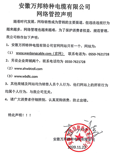 鄭重聲明:安徽萬邦特種電纜有限公司官方網站為:www_wanbangcable_com.gzthhy.cn,除此之外無任何子網站或合作網站,其余均為假冒偽劣。電話:0550-7621728 13485756353 地 址:安徽省天長市滁州高新技術產業開發區經四路29號